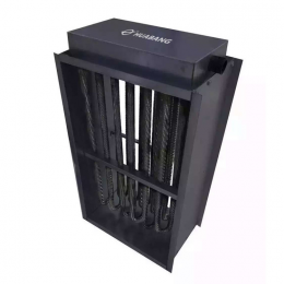風(fēng)道加熱器主要用于風(fēng)道中的空氣加熱,規(guī)格分低溫、中溫、高溫三種形式,在結(jié)構(gòu)上的共同之處是采用了用鋼板支撐電熱管以減少風(fēng)機(jī)停止時(shí)電熱管的振動(dòng),在接線盒中都裝有超溫控制裝置。